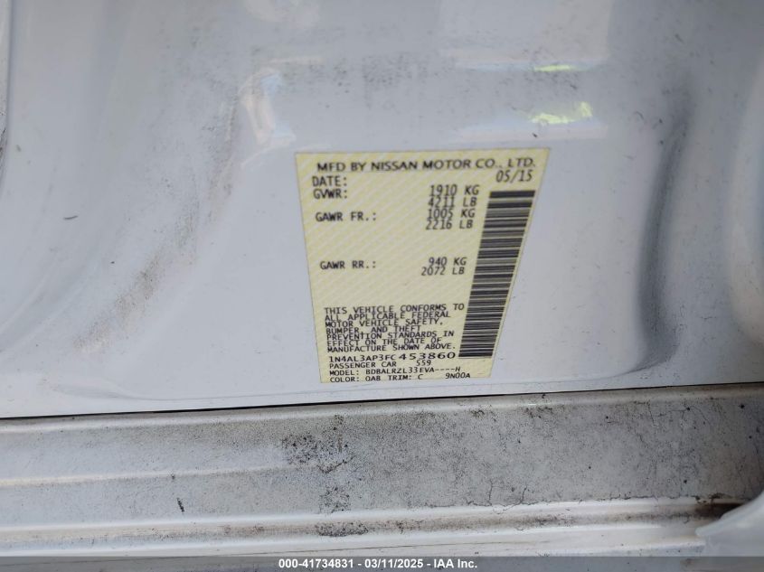 Цвет БелыйЦилиндры 4Привод Передний приводVIN 1N4AL3AP3FC******Состояние НеизвестноПовреждения Передняя или задняя AutoRIA