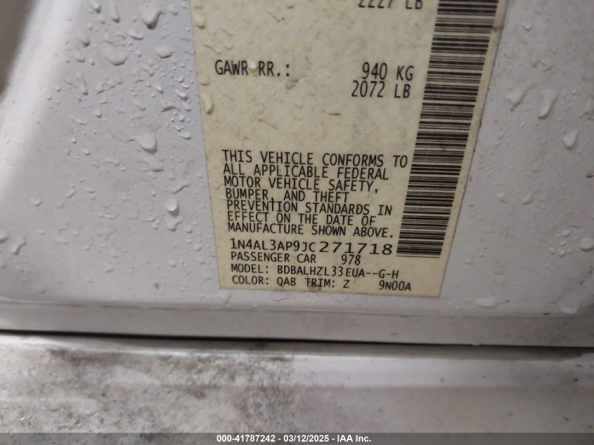 Цвет БелыйЦилиндры 4Привод Передний приводVIN 1N4AL3AP9JC******Состояние НеизвестноПовреждения Передняя или задняя AutoRIA