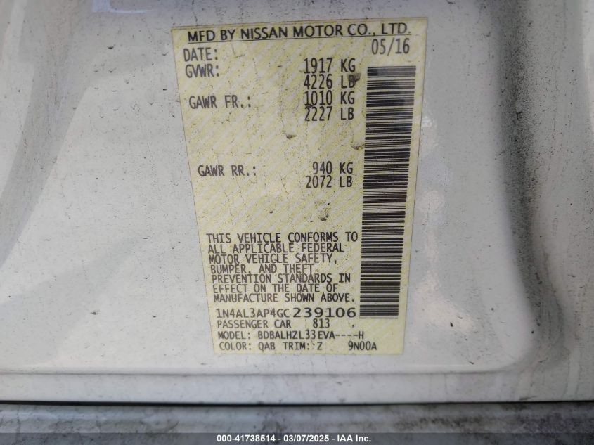 2016 NISSAN ALTIMA 2016 року Бензин, 2.5, Передний привод, vin - 1N4AL3AP4GC****** из США