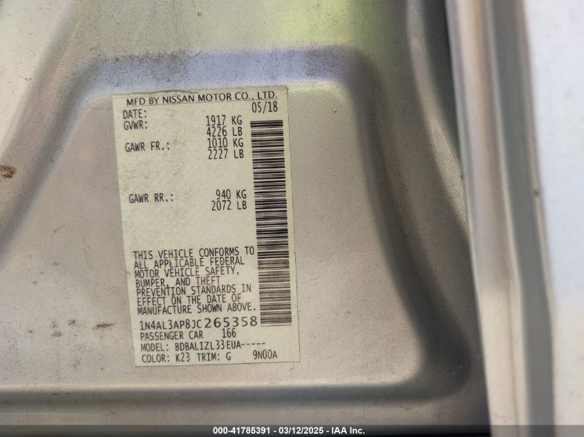 2018 NISSAN ALTIMA 2018 року Бензин, 2.5, Передний привод, vin - 1N4AL3AP8JC****** из США