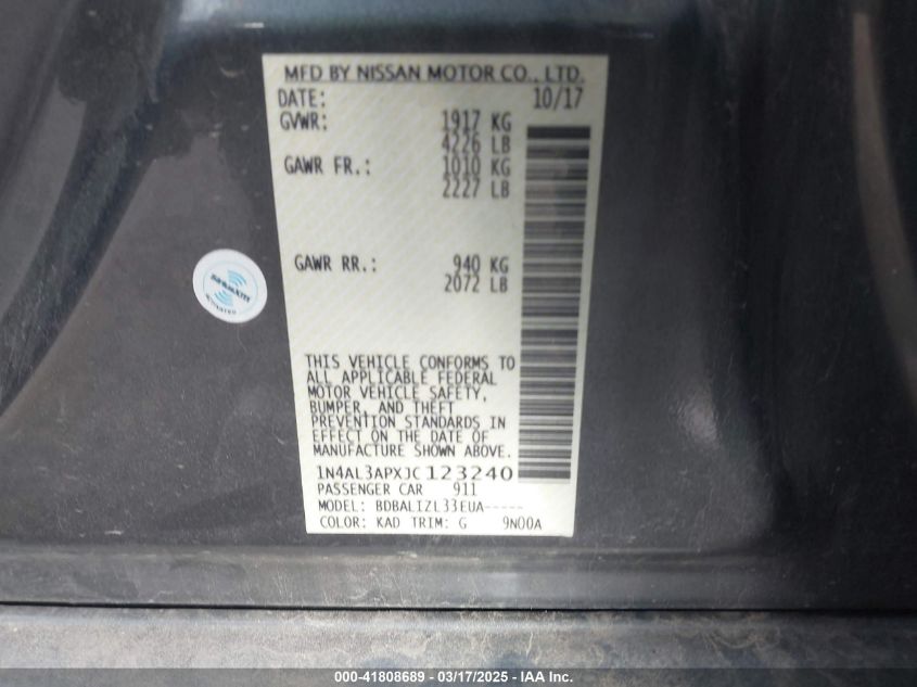 2018 NISSAN ALTIMA 2018 року Бензин, 2.5, Передний привод, vin - 1N4AL3APXJC****** из США