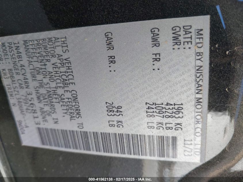 2024 NISSAN ALTIMA 2024 року Бензин, 2.5, Передний привод, vin - 1N4BL4CV4RN****** из США