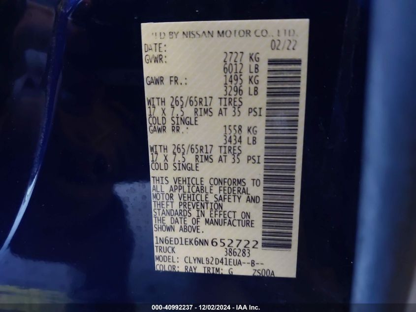 2022 NISSAN FRONTIER 2022 року Бензин, 3.8, Полный привод, vin - 1N6ED1EK6NN****** из США
