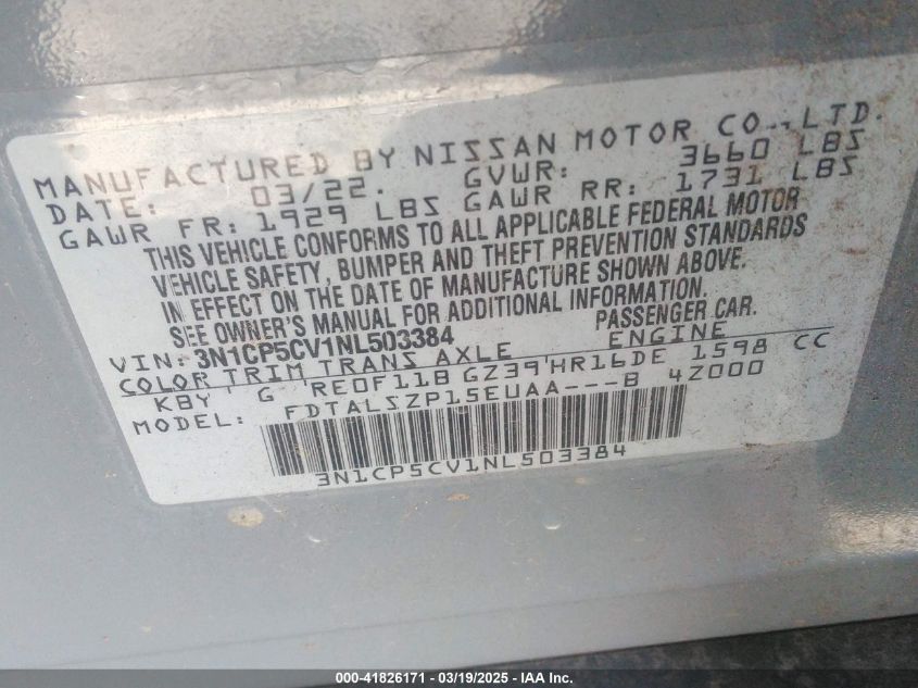 2022 NISSAN KICKS 2022 року Бензин, 1.6, Передний привод, vin - 3N1CP5CV1NL****** из США