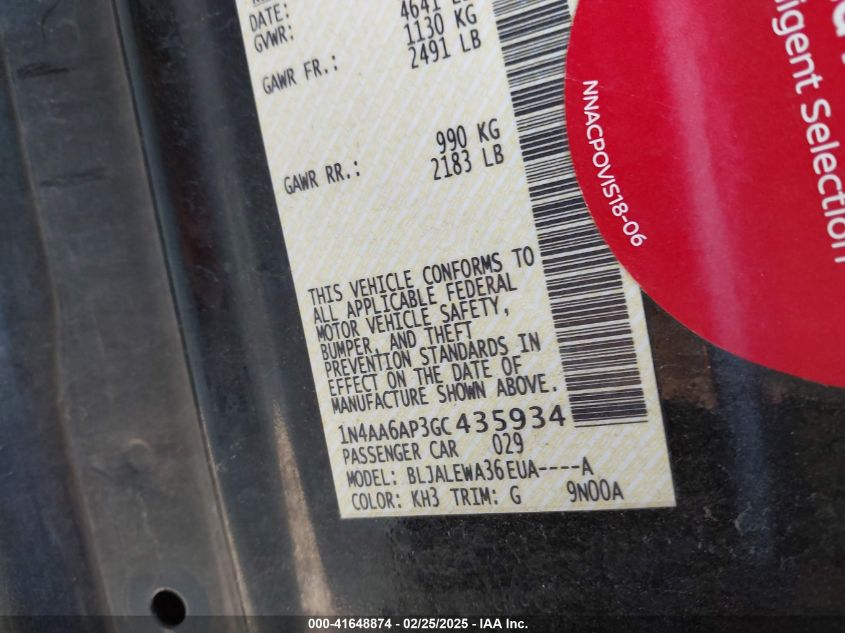Цвет ЧерныйЦилиндры 6Привод Передний приводVIN 1N4AA6AP3GC******Состояние НеизвестноПовреждения Левая сторона AutoRIA