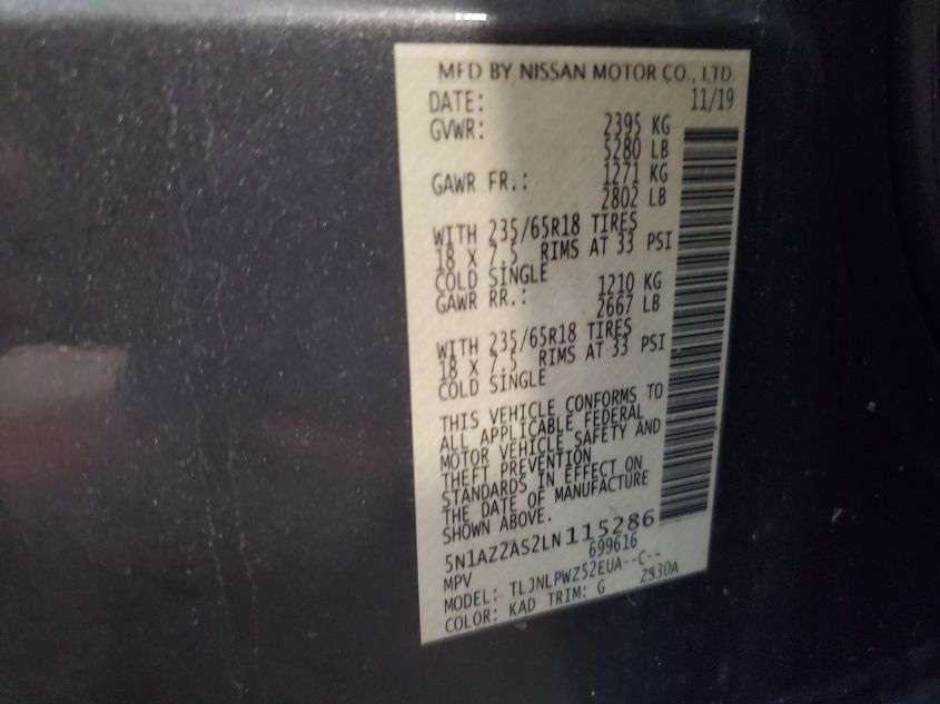 2020 NISSAN MURANO 2020 року Бензин, 3.5, Полный привод, vin - 5N1AZ2AS2LN****** из США