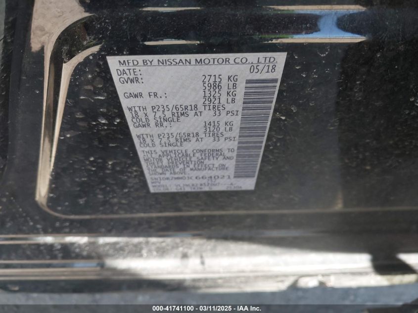 2018 NISSAN PATHFINDER 2018 року Бензин, 3.5, Полный привод, vin - 5N1DR2MM0JC****** из США