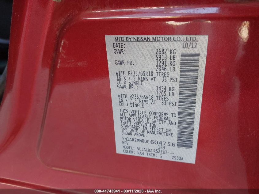 2013 NISSAN PATHFINDER 2013 року Бензин, 3.5, Передний привод, vin - 5N1AR2MN0DC****** из США
