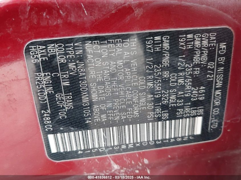 2021 NISSAN ROGUE 2021 року Бензин, 2.5, Полный привод, vin - JN8AT3DDXMW****** из США