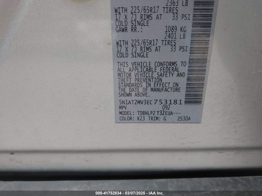 Цвет СеребряныйЦилиндры 4Привод Полный приводVIN 5N1AT2MV3EC******Состояние НеизвестноПовреждения Передняя или задняя AutoRIA