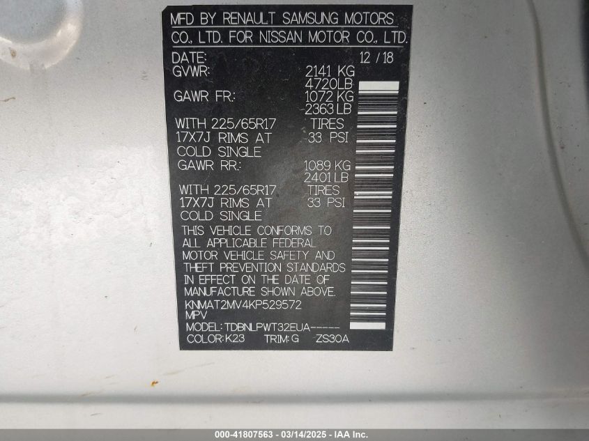 2019 NISSAN ROGUE 2019 року Бензин, 2.5, Полный привод, vin - KNMAT2MV4KP****** из США