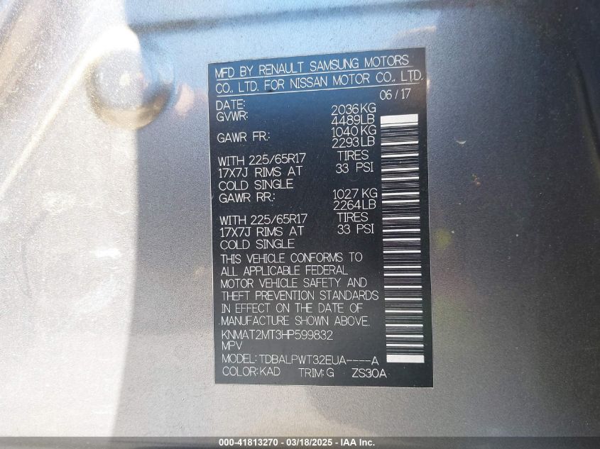 2017 NISSAN ROGUE 2017 року Бензин, 2.5, Передний привод, vin - KNMAT2MT3HP****** из США