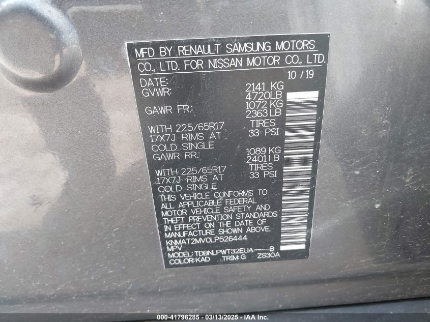2020 NISSAN ROGUE 2020 року Бензин, 2.5, Полный привод, vin - KNMAT2MV0LP****** из США