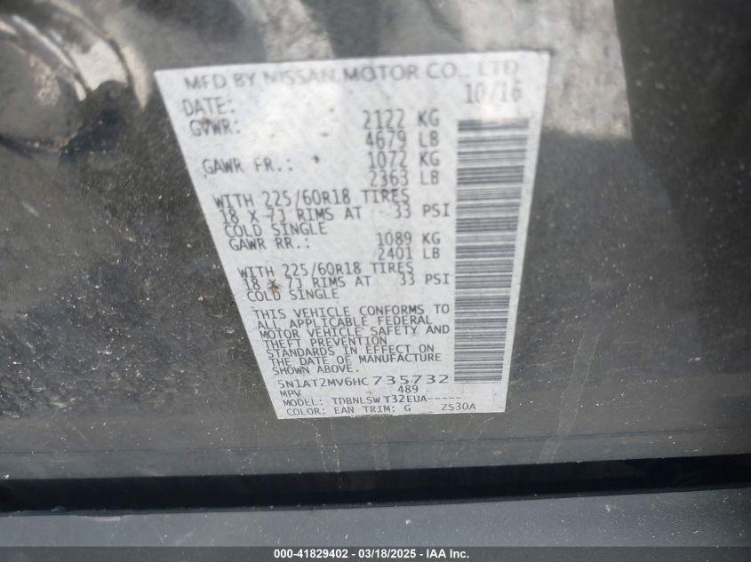 2017 NISSAN ROGUE 2017 року Бензин, 2.5, Полный привод, vin - 5N1AT2MV6HC****** из США