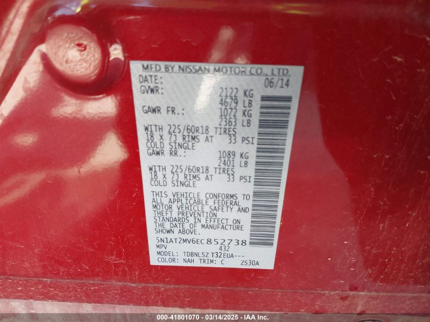 2014 NISSAN ROGUE 2014 року Бензин, 2.5, Полный привод, vin - 5N1AT2MV6EC****** из США