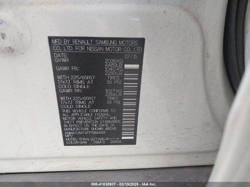 2015 NISSAN ROGUE 2015 року Бензин, 2.5, Передний привод, vin - KNMAT2MT4FP****** из США