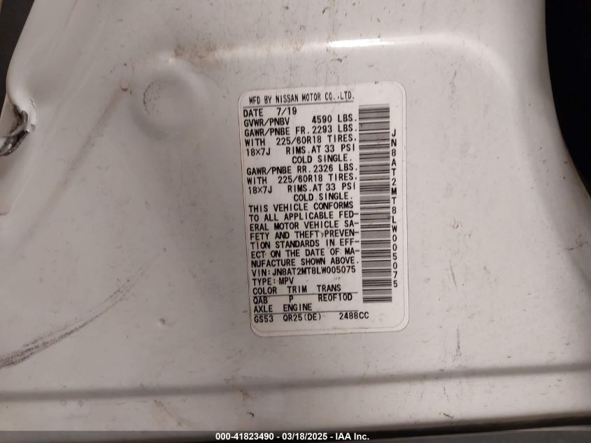 2020 NISSAN ROGUE 2020 року Бензин, 2.5, Передний привод, vin - JN8AT2MT8LW****** из США