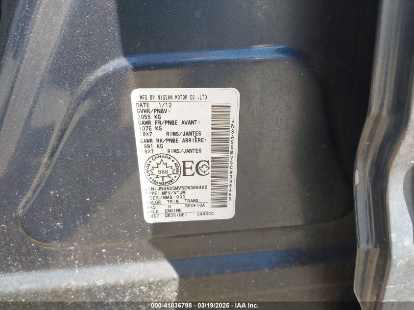 2012 NISSAN ROGUE 2012 року Бензин, 2.5, Полный привод, vin - JN8AS5MV5CW****** из США