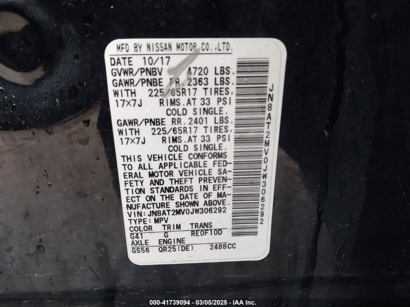 2018 NISSAN ROGUE 2018 року Бензин, 2.5, Полный привод, vin - JN8AT2MV0JW****** из США