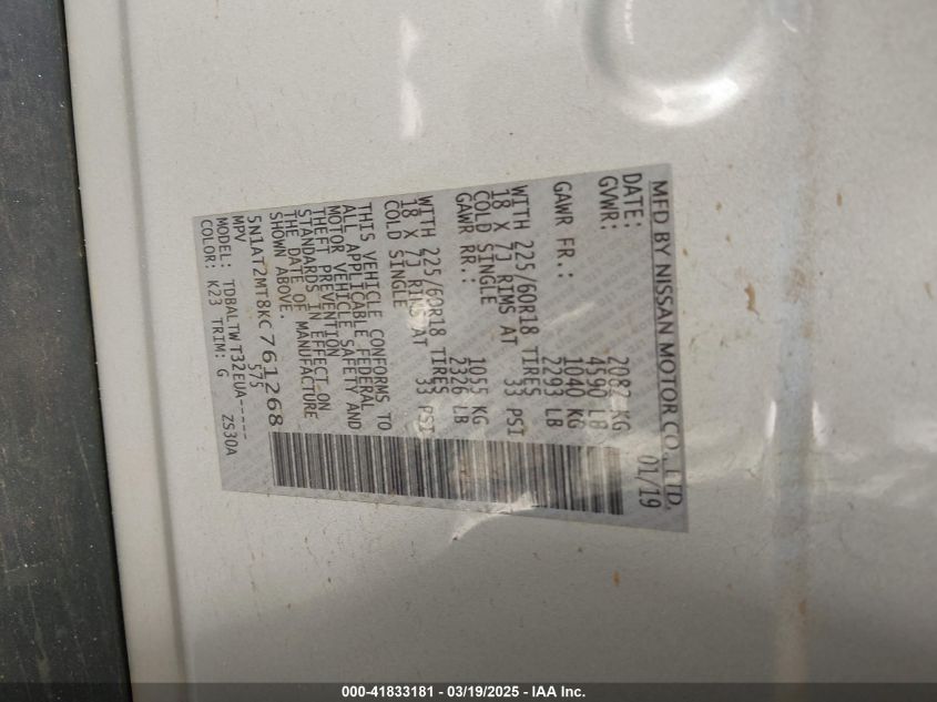 2019 NISSAN ROGUE 2019 року Бензин, 2.5, Передний привод, vin - 5N1AT2MT8KC****** из США