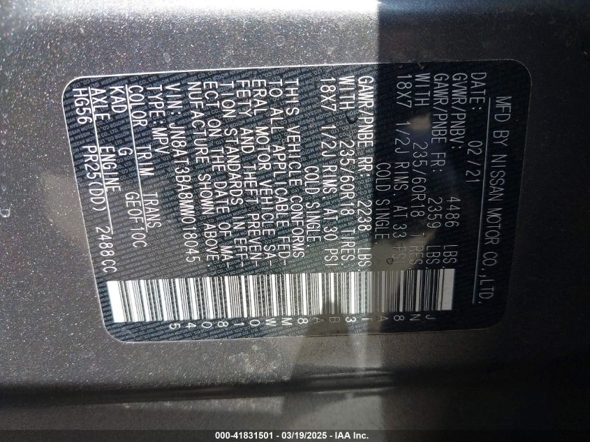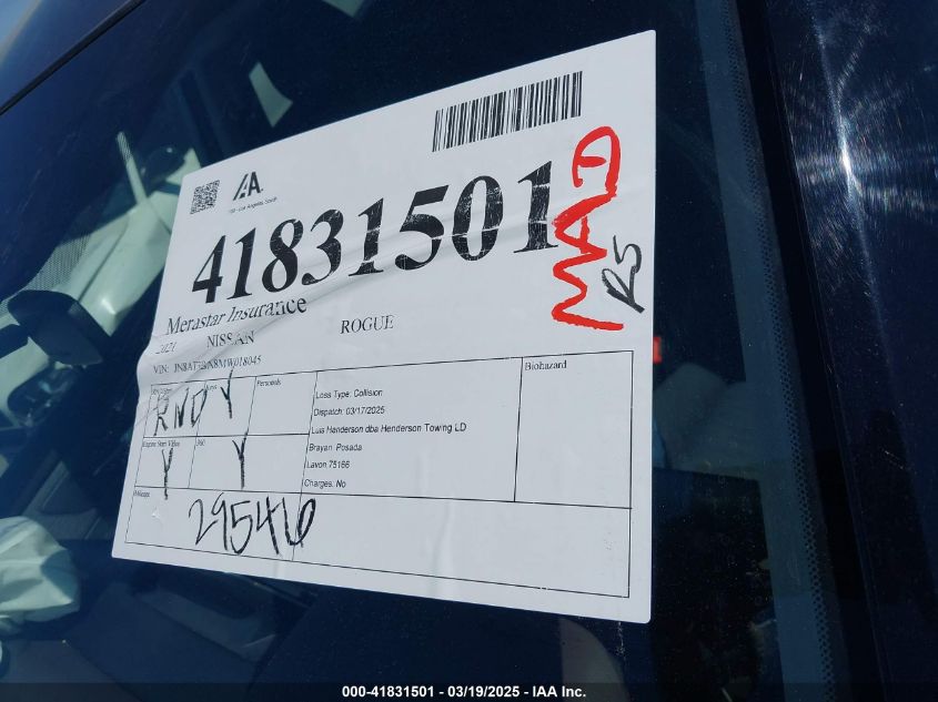 2021 NISSAN ROGUE 2021 року Бензин, 2.5, Передний привод, vin - JN8AT3BA8MW****** из США