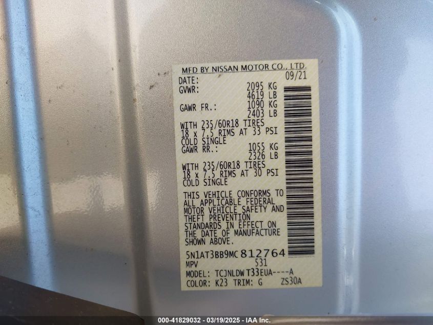 2021 NISSAN ROGUE 2021 року Бензин, 2.5, Полный привод, vin - 5N1AT3BB9MC****** из США