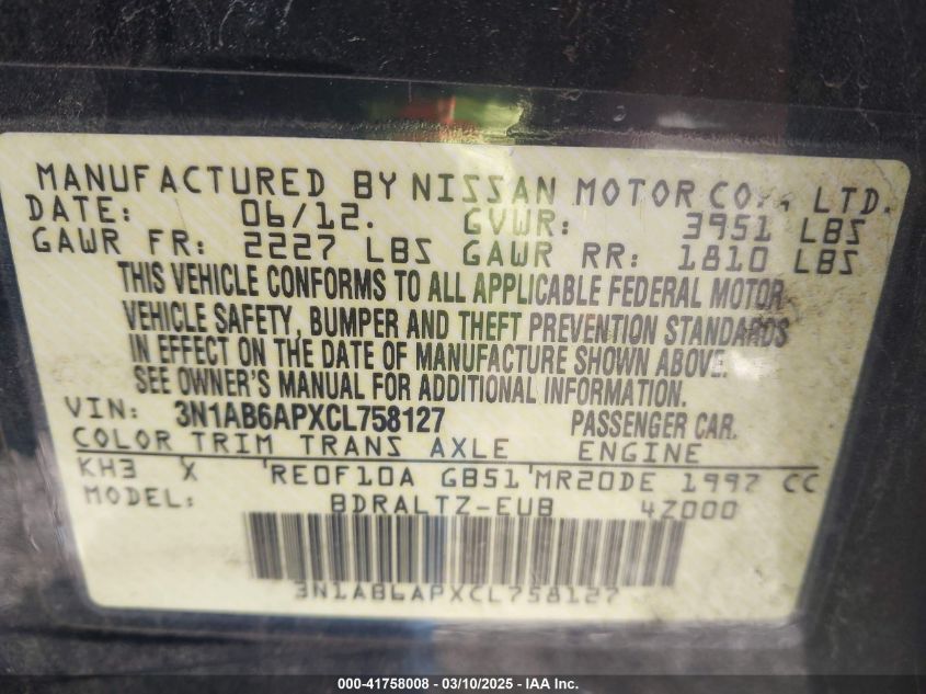 2012 NISSAN SENTRA 2012 року Бензин, 2.0, Передний привод, vin - 3N1AB6APXCL****** из США