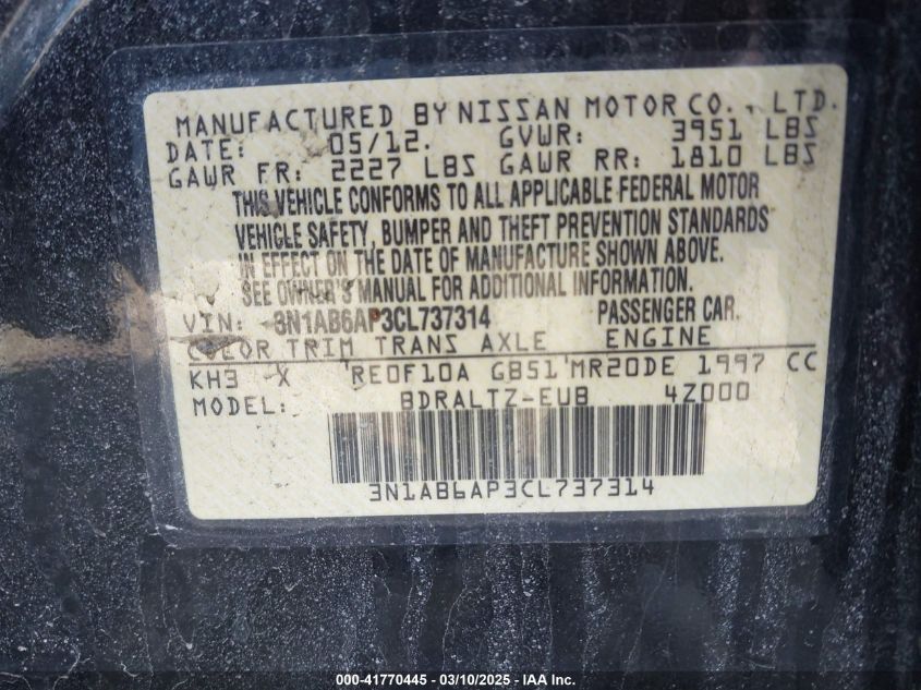 Цвет ЧерныйЦилиндры 4Привод Передний приводVIN 3N1AB6AP3CL******Состояние НеизвестноПовреждения Передняя или задняя AutoRIA