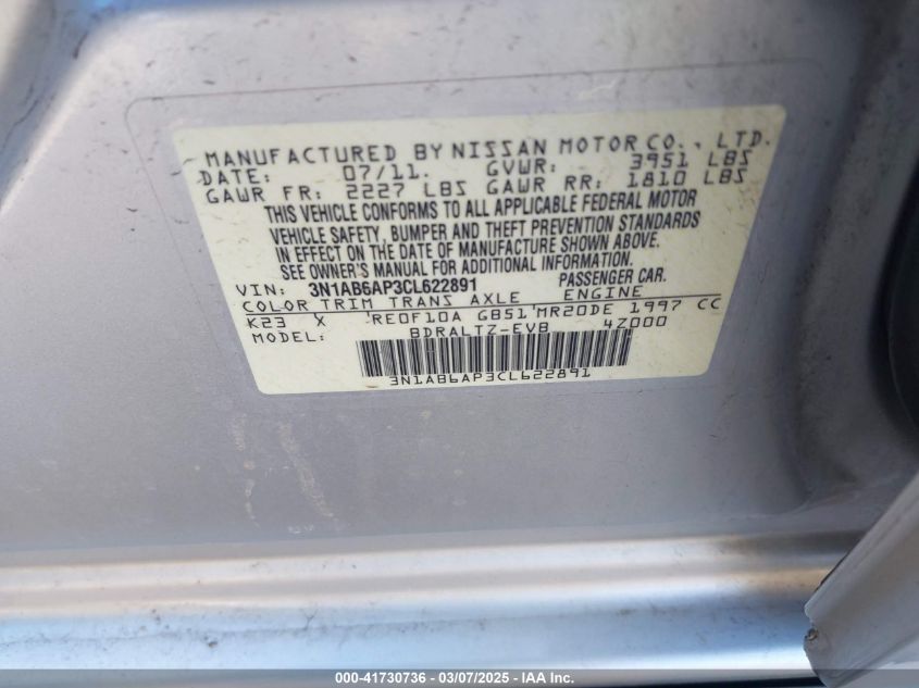 Цвет СеребряныйЦилиндры 4Привод Передний приводVIN 3N1AB6AP3CL******Состояние НеизвестноПовреждения Передняя или задняя AutoRIA