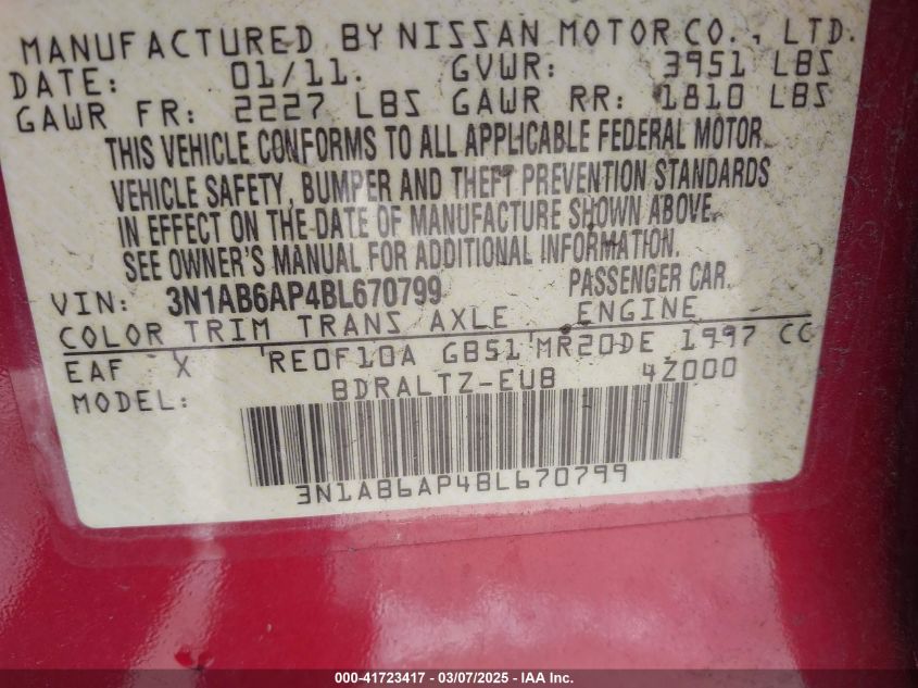 Цвет КрасныйЦилиндры 4Привод Передний приводVIN 3N1AB6AP4BL******Состояние НеизвестноПовреждения Задняя AutoRIA
