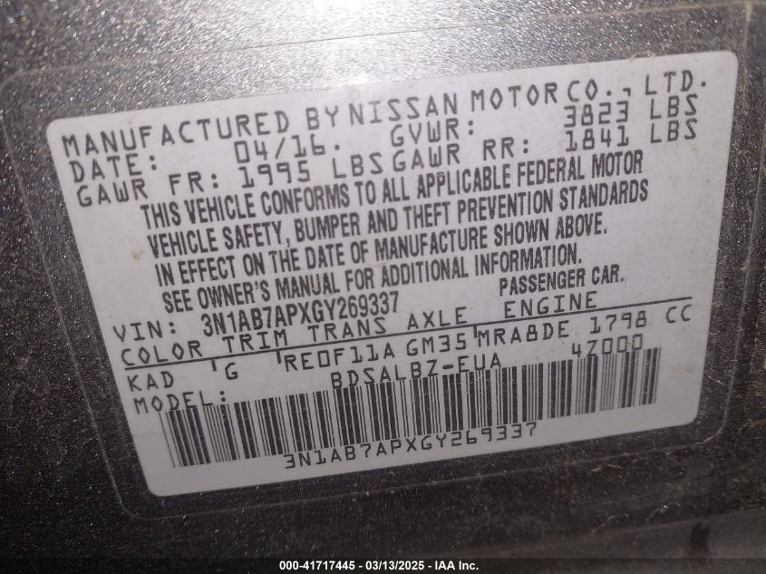 Цвет СерыйЦилиндры 4Привод Передний приводVIN 3N1AB7APXGY******Состояние НеизвестноПовреждения Передняя или задняя AutoRIA
