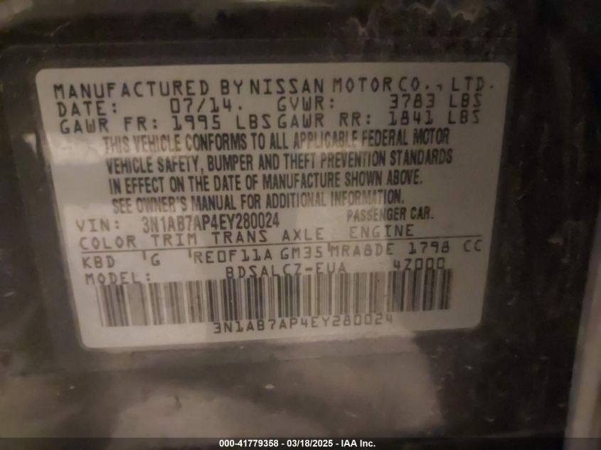 2014 NISSAN SENTRA 2014 року Бензин, 1.8, Передний привод, vin - 3N1AB7AP4EY****** из США