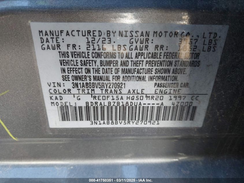 2024 NISSAN SENTRA 2024 року Бензин, 2.0, Передний привод, vin - 3N1AB8BV5RY****** из США