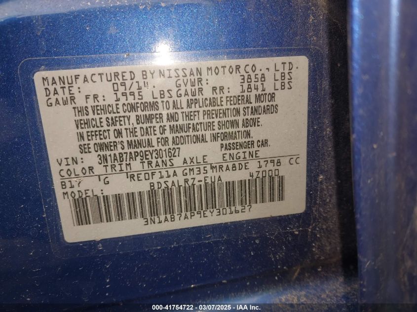 Цвет СинийЦилиндры 4Привод Передний приводVIN 3N1AB7AP9EY******Состояние НеизвестноПовреждения Передняя или задняя AutoRIA