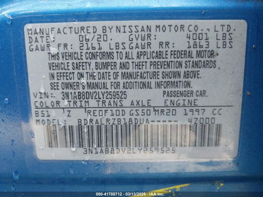 2020 NISSAN SENTRA 2020 року Бензин, 2.0, Передний привод, vin - 3N1AB8DV2LY****** из США