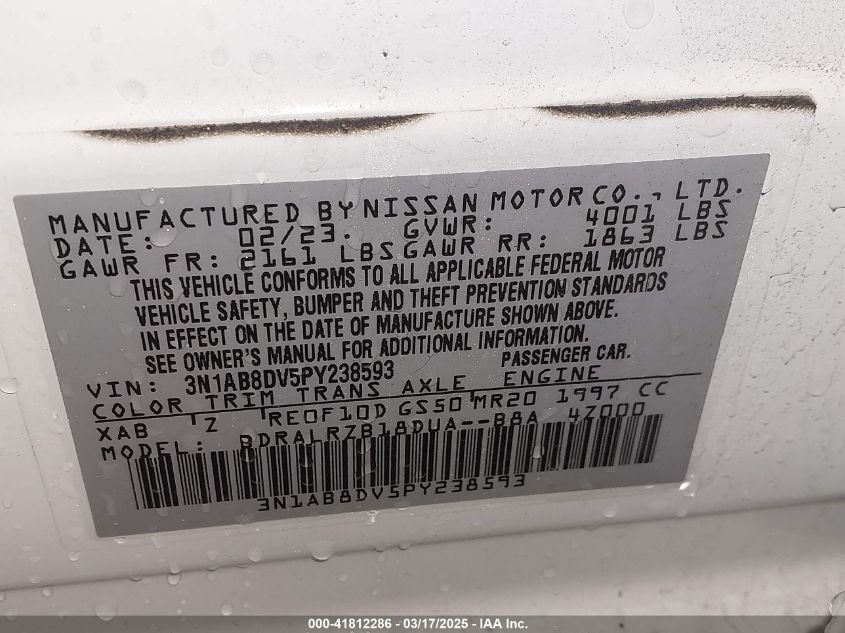 2023 NISSAN SENTRA 2023 року Бензин, 2.0, Передний привод, vin - 3N1AB8DV5PY****** из США