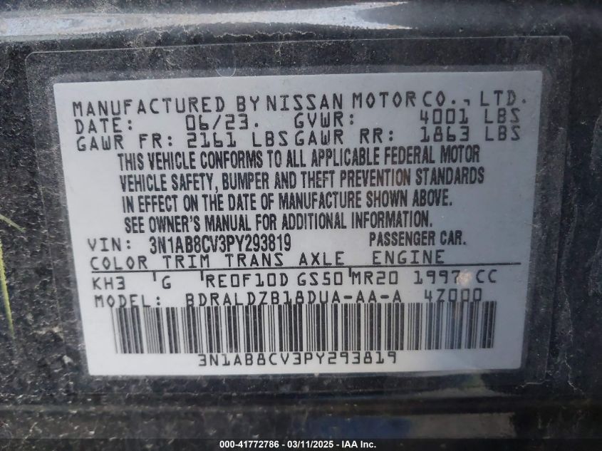 2023 NISSAN SENTRA 2023 року Бензин, 2.0, Передний привод, vin - 3N1AB8CV3PY****** из США