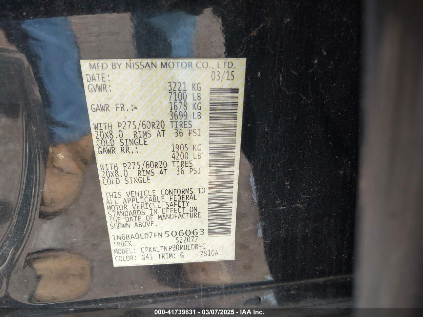 2015 NISSAN TITAN 2015 року Бензин, 5.6, Неизвестно, vin - 1N6BA0ED7FN****** из США