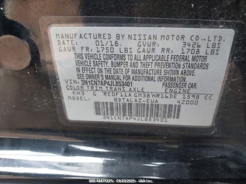 Цвет ЧерныйЦилиндры 4Привод Передний приводVIN 3N1CN7AP4JL******Состояние НеизвестноПовреждения Передняя или задняя AutoRIA