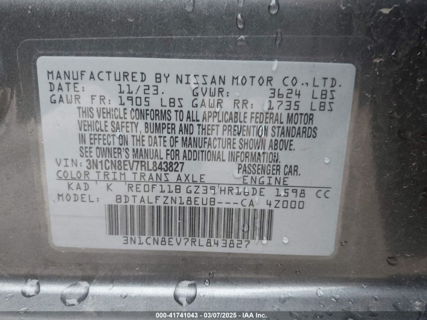 2024 NISSAN VERSA 2024 року Бензин, 1.6, Передний привод, vin - 3N1CN8EV7RL****** из США