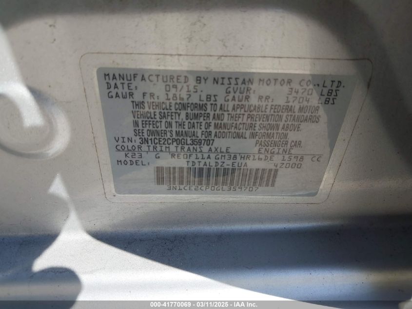 2016 NISSAN VERSA NOTE 2016 року Бензин, 1.6, Передний привод, vin - 3N1CE2CP0GL****** из США