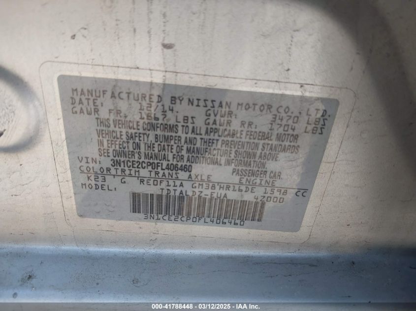 2015 NISSAN VERSA NOTE 2015 року Бензин, 1.6, Передний привод, vin - 3N1CE2CP0FL****** из США