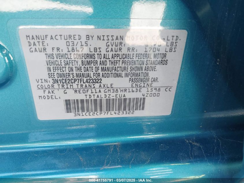 2015 NISSAN VERSA NOTE 2015 року Бензин, 1.6, Передний привод, vin - 3N1CE2CP7FL****** из США