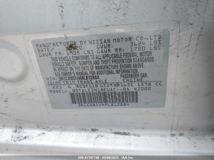 2021 NISSAN VERSA 2021 року Бензин, 1.6, Передний привод, vin - 3N1CN8DV4ML****** из США