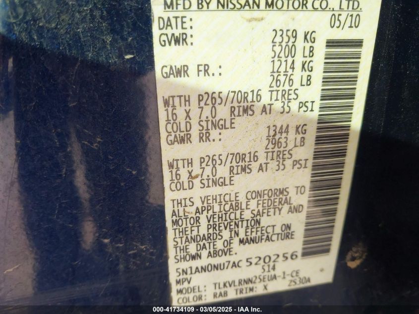 2010 NISSAN XTERRA 2010 року Бензин, 4.0, Неизвестно, vin - 5N1AN0NU7AC****** из США