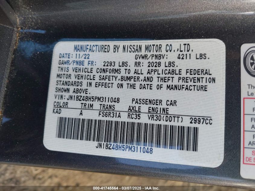 2023 NISSAN Z 2023 року Бензин, 3.0, Задний привод, vin - JN1BZ4BH5PM****** из США