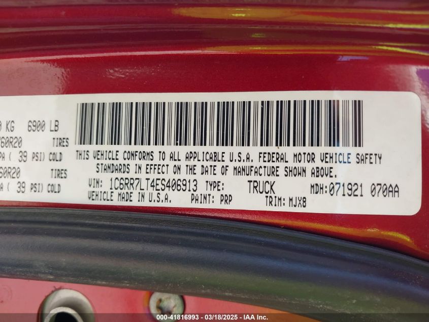 2014 RAM 1500 2014 року Бензин, 5.7, Полный привод, vin - 1C6RR7LT4ES****** из США