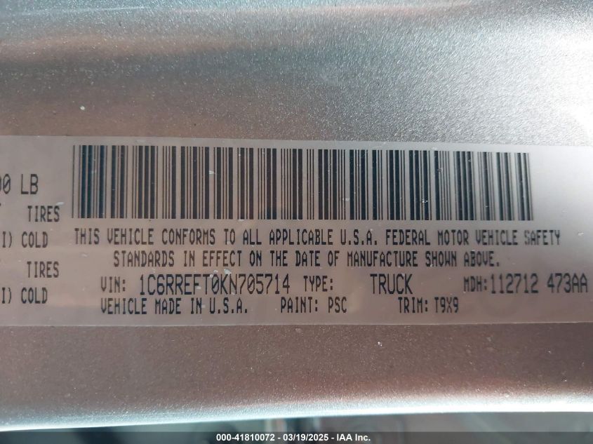 2019 RAM 1500 2019 року Бензин, 5.7, Неизвестно, vin - 1C6RREFT0KN****** из США