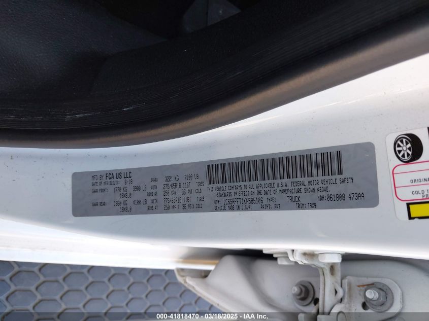 2019 RAM 1500 2019 року Бензин, 5.7, Полный привод, vin - 1C6SRFFT1KN****** из США