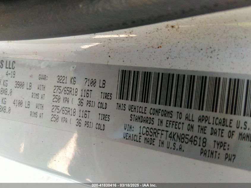 Цвет БелыйЦилиндры 8Привод Полный приводVIN 1C6SRFFT4KN******Состояние НеизвестноПовреждения Передняя и задняя AutoRIA
